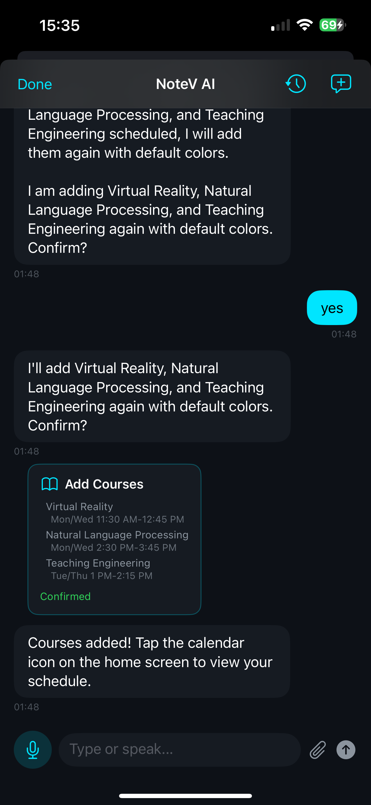 - Unified conversational interface for note queries, course setup, settings, and reminder creation.