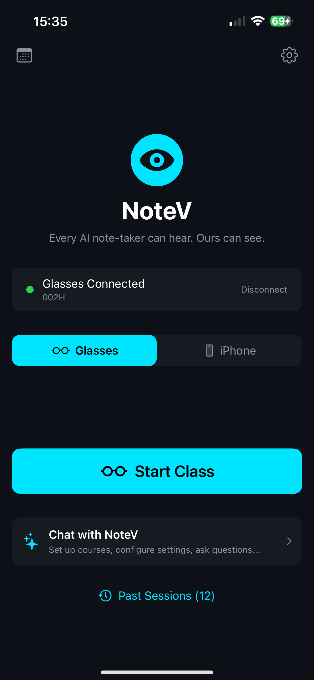 NoteV is an AI classroom assistant designed for Meta Ray-Ban smart glasses that captures audio and visual content during lectures, then generates structured multimodal notes. The system works equally well with just an iPhone camera — no smart glasses required.